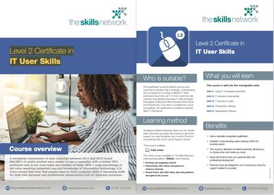 This qualification would be ideal for anyone who would like to develop their knowledge, understanding and competence in a range of different IT skills, particularly those who use IT in their current job role. Learners must already have basic IT skills and basic knowlegde of Microsoft Office software (Word, Excel and PowerPoint), to be able to complete the course successfully. The qualification is suitable for learners aged 14 and above.